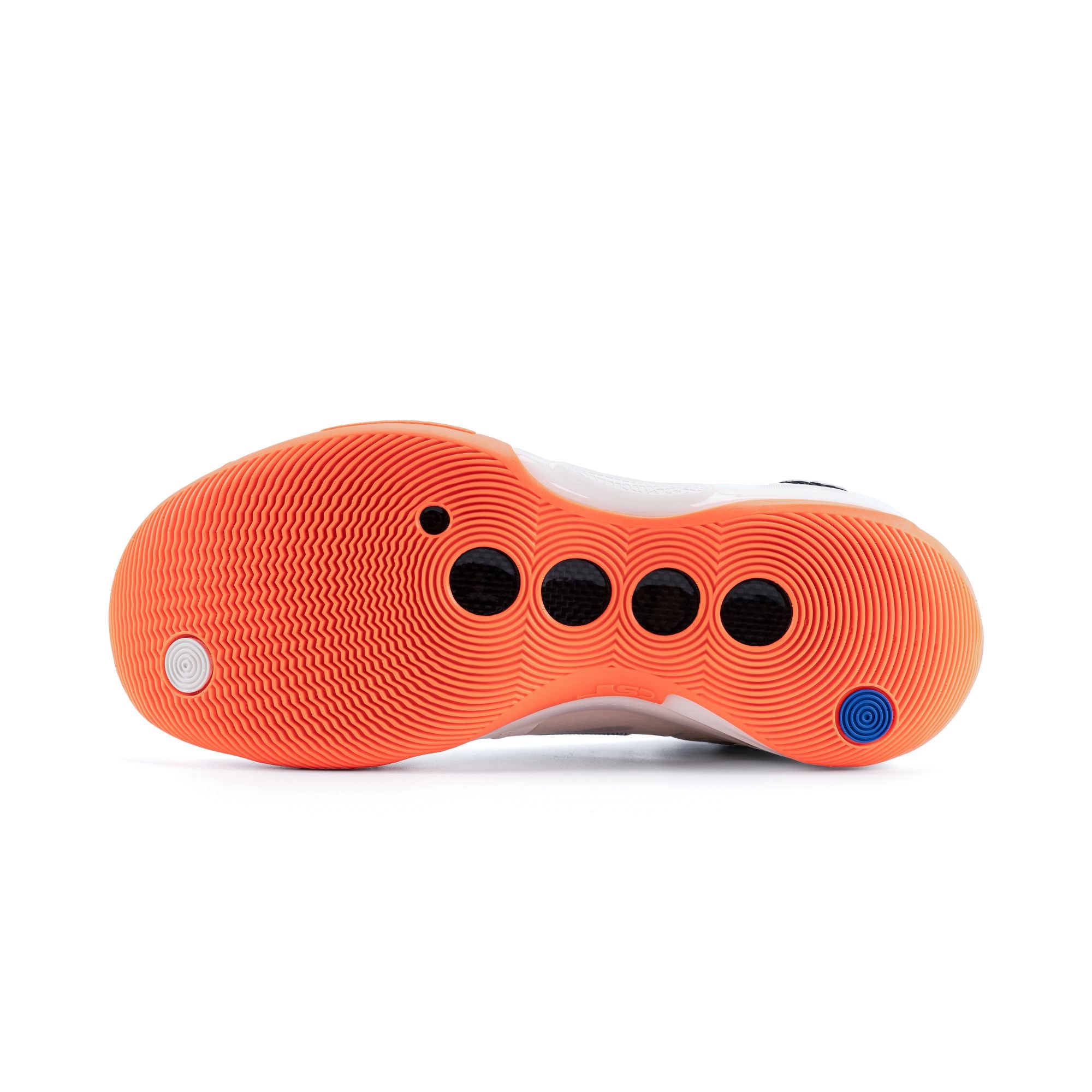 Coloured key-shape TPU stabilizer and TPU panel surrounding the midsole to best fit movements in every direction and avoid rollover- friendly to players with explosive playstyle.