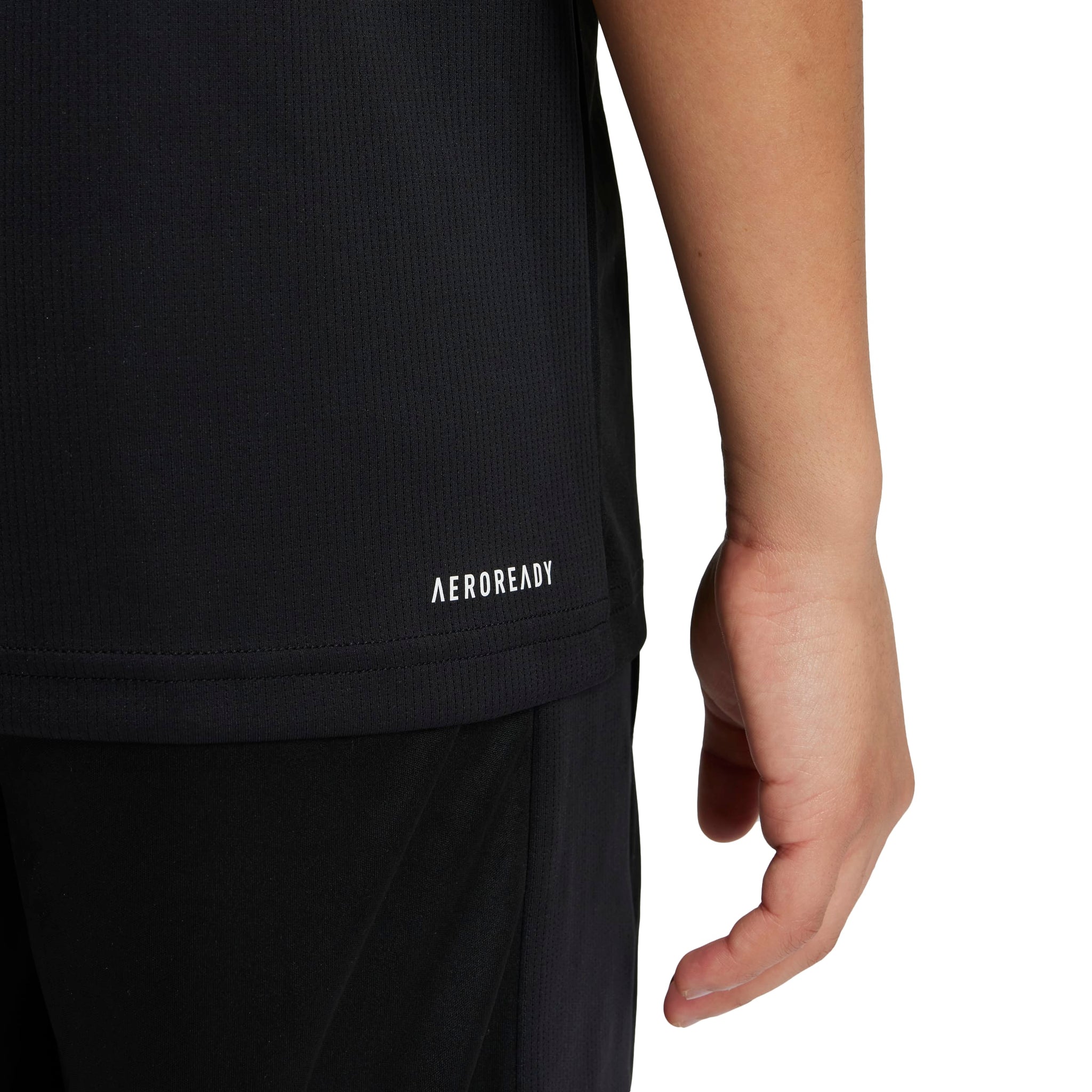 Train with the Train Essentials Logo Regular Fit T-Shirt Junior. This unisex t-shirt, made entirely from recycled materials, features AEROREADY technology for a dry and comfortable feel during and after sport. The knit construction ensures breathability while the mesh back provides ideal ventilation. With a regular fit and sweat-wicking properties, this t-shirt is designed for limitless movement and comfort.