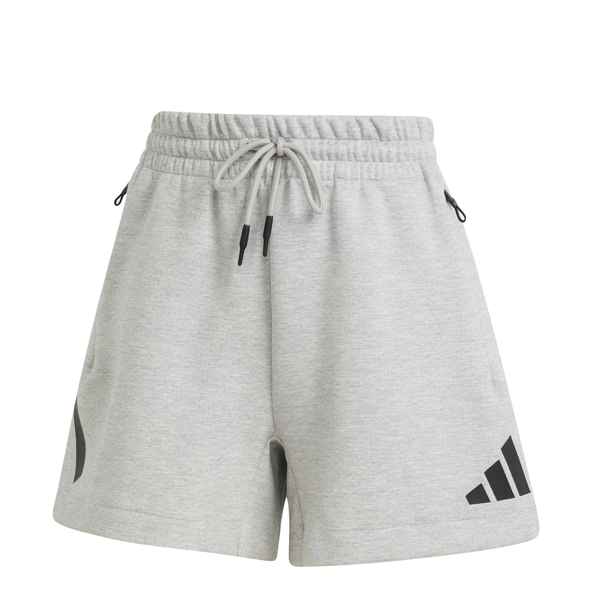 Stay warm, stay dry, and radiate zero negative energy. This adidas women's Z.N.E. Short is perfect for those who value connection and community in sport. The loose-fitting shorts are knit from a sustainable blend of 57% recycled polyester and 43% cotton, with a three-layer double-knit spacer fabric to keep the cold out. Featuring tech-inspired drawcords and zippers, it's completed by a matte rubber print three-bar logo for that iconic adidas aesthetic.