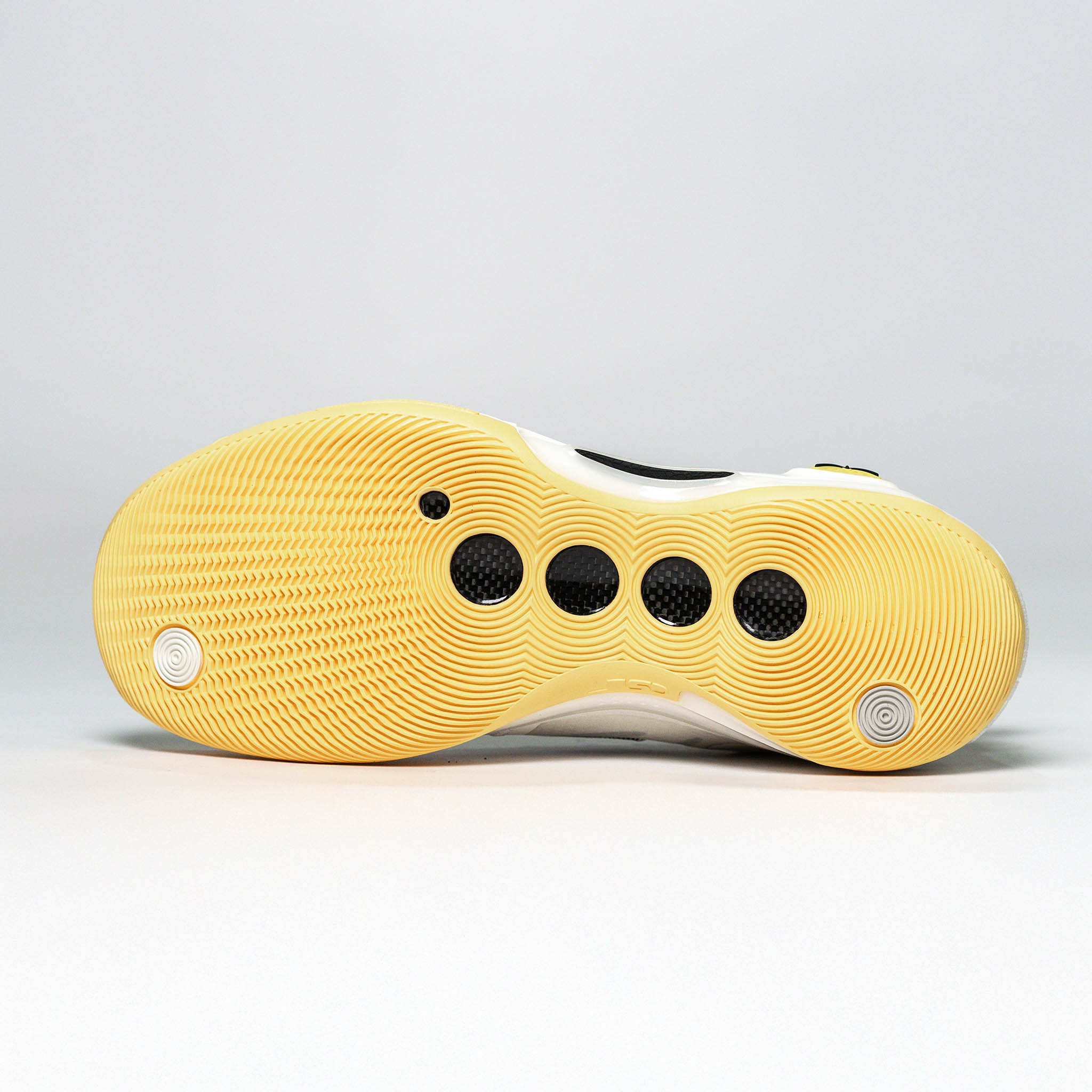 Colored key-shape TPU stabilizer and TPU panel surrounding the midsole to best fit movements in every direction and avoid rollover- friendly to players with explosive playstyle.