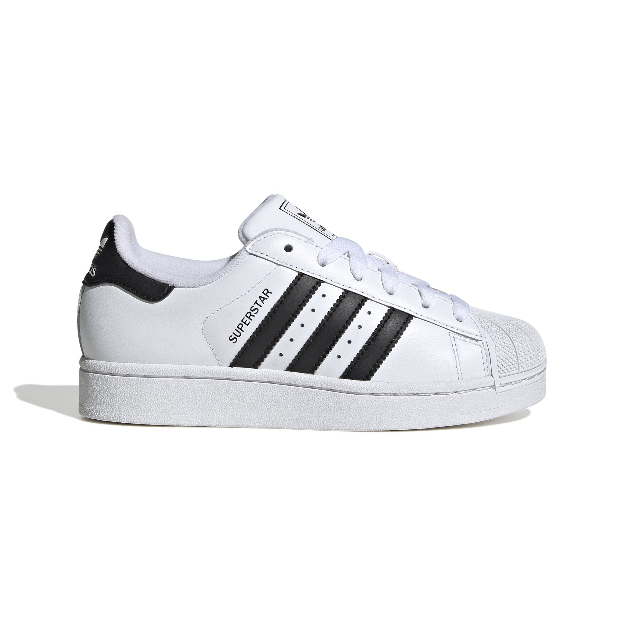 The adidas Superstar II shoes are back and ready to dominate the streets once more. With its iconic shell toe design and serrated 3-Stripes, these shoes have spent over 50 years fusing sport and street style. Revamped in clean, versatile black and white, these juniors' trainers provide all-day comfort with a moulded sockliner and structured leather upper. The stable rubber cupsole with classic herringbone traction pattern keeps you grounded and going in class and style. Wear them with practically anything, from glossy basketball shorts to baggy jeans or cargo pants.
