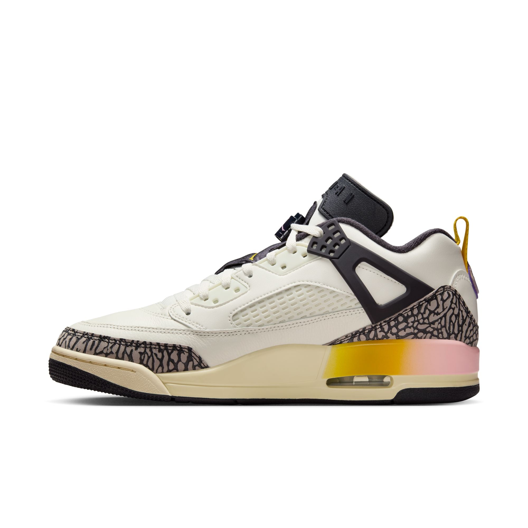 Jordan Spizike Low Men's Shoes The Spizike takes elements of five classic Jordans, combines them, and gives you one iconic sneaker. It's an homage to Spike Lee formally introducing Hollywood and hoops in a culture moment. You get a great looking pair of kicks with some history. What more can you ask for? Ya dig? Real and synthetic leather and textile upper add durability. Nike Air technology absorbs impact for cushioning with every step. Solid rubber outsole provides durability and traction.