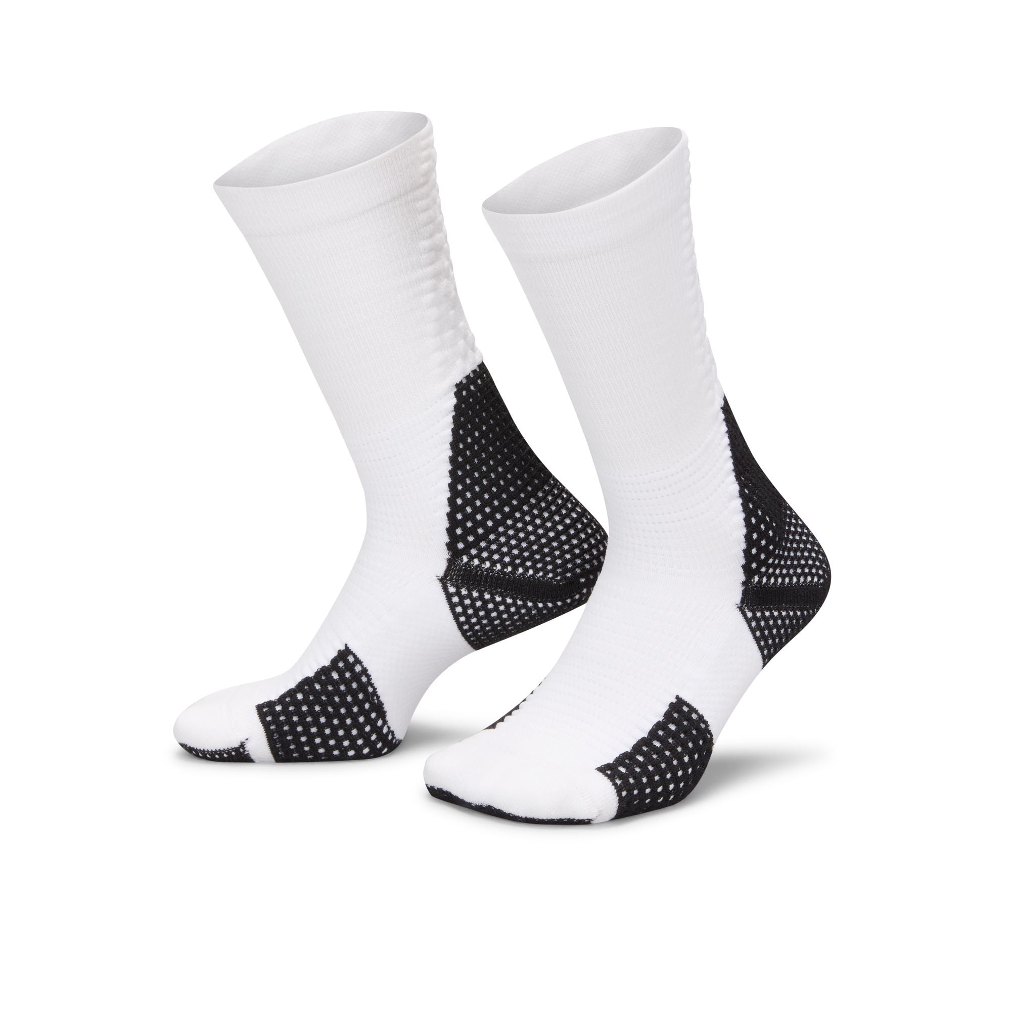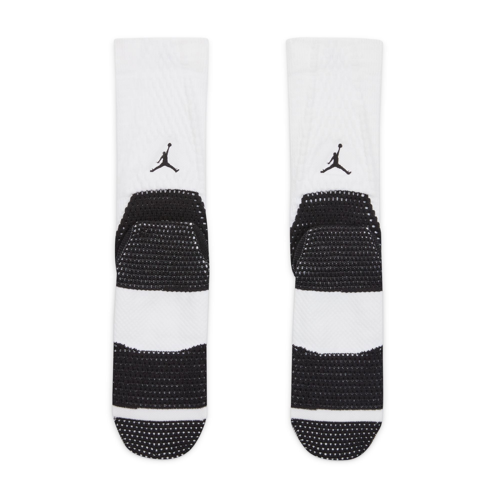 Jordan Unicorn Dri-FIT ADV Cushioned Crew Socks (1 Pair) Take your game to the next level in socks that work for you. Unicorn 3-D Spacer Knit material adds support at the back of the heel and activates a wrapping sensation to help your foot feel locked in. Plus, it uses advanced sweat-wicking tech to help feet stay dry. Say Goodbye To Sweat Nike Dri-FIT ADV technology combines moisture-wicking fabric with advanced engineering and features to help you stay dry and comfortable. Space Out So You Can Stay Focused Unicorn 3-D Spacer Knit helps provide cushion, support and breathability around high-pressure areas such as the toe, heel and ball of the foot. Power Worth Staying At The Gym For The patented Circular Split Heel provides staying power that hugs your heel and helps to minimize slippage. 360 Locked In The patented 360 Toe Lock helps to keep the sock in place so you can focus on your sport or workout. Make It Mesh Checkered mesh pattern offers cushioning, compression and added protection for the back of the leg. More Details