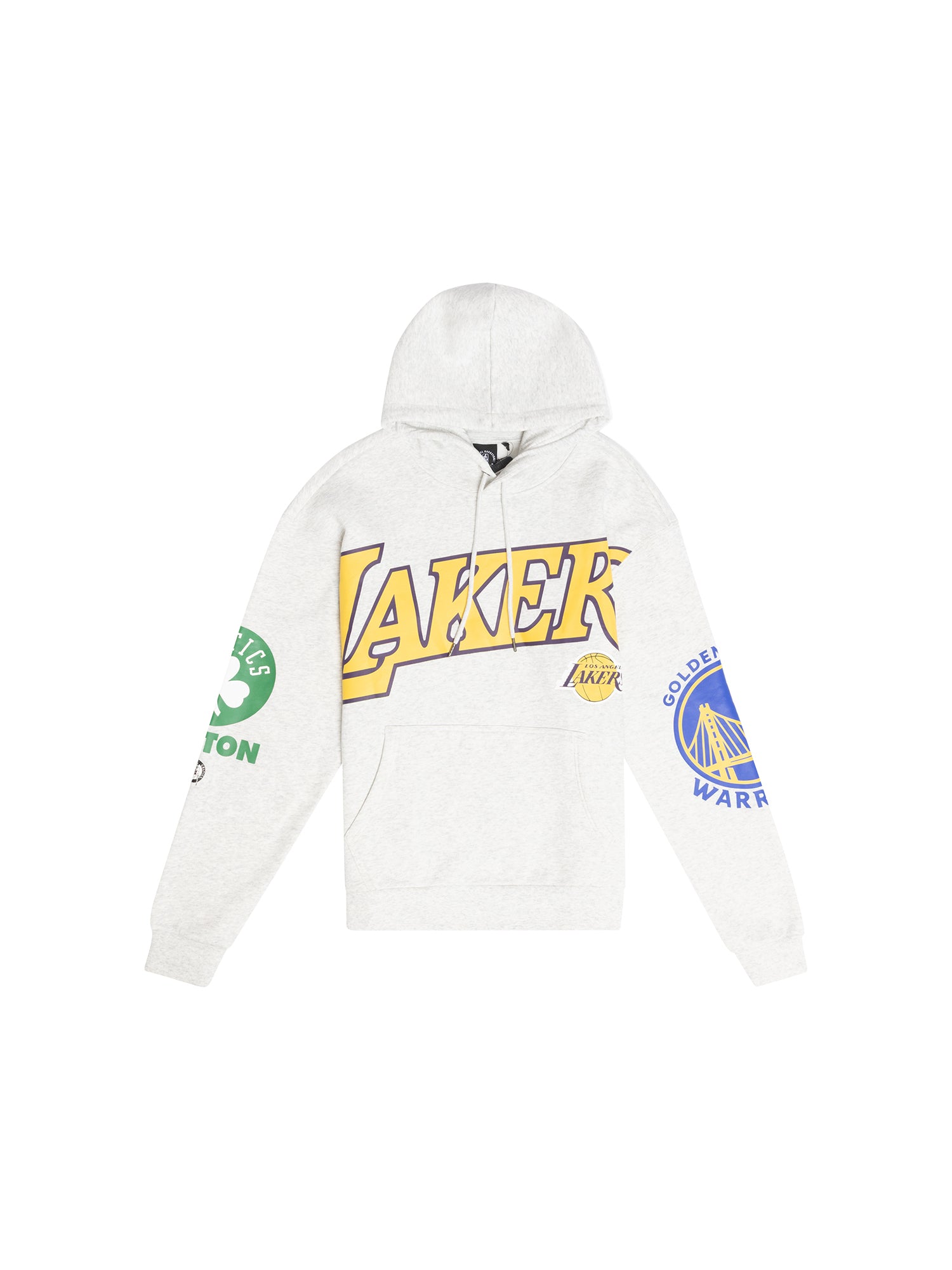 Front features Lakers logo with Celtics and Warriors sleeve patches