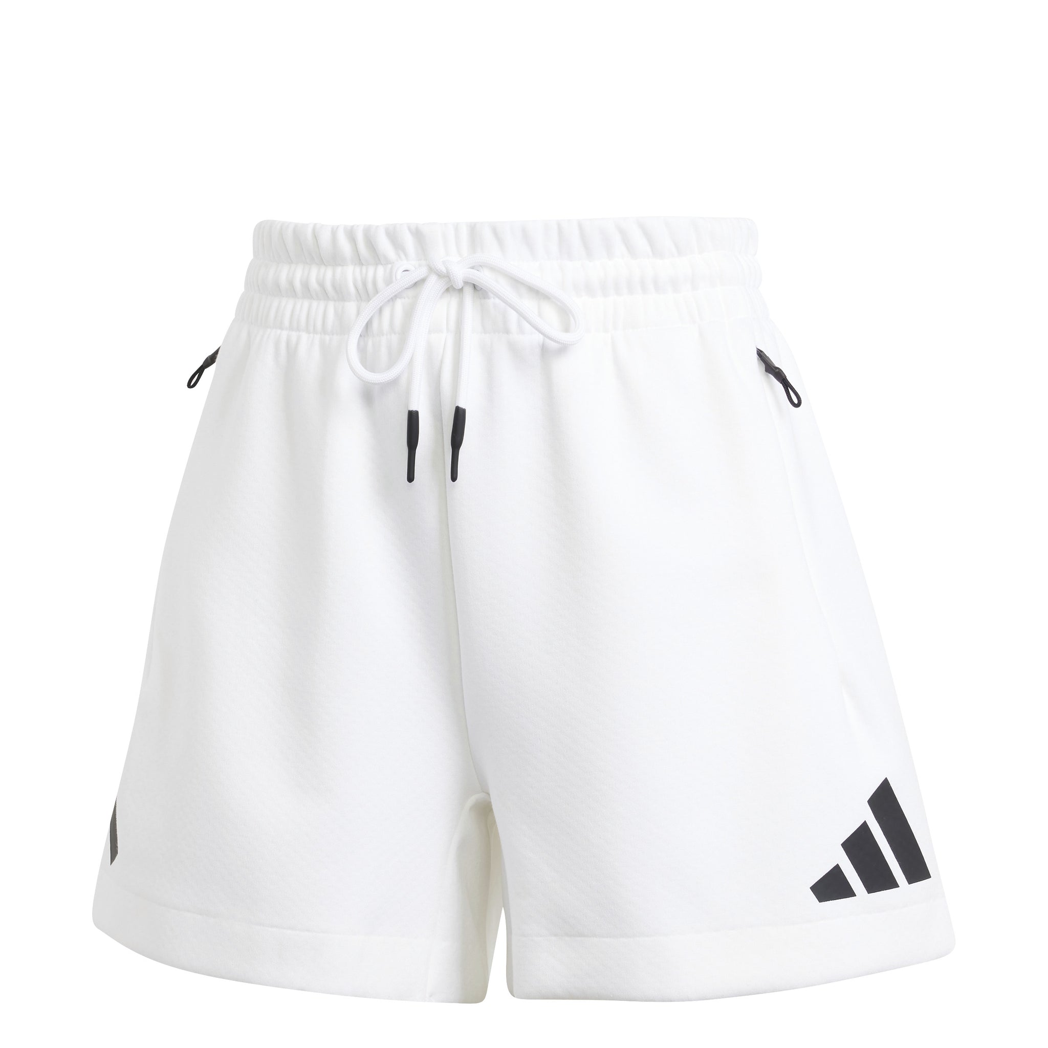 Stay warm, stay dry, and radiate zero negative energy. This adidas women's Z.N.E. Short is perfect for those who value connection and community in sport. The loose-fitting shorts are knit from a sustainable blend of 57% recycled polyester and 43% cotton, with a three-layer double-knit spacer fabric to keep the cold out. Featuring tech-inspired drawcords and zippers, it's completed by a matte rubber print three-bar logo for that iconic adidas aesthetic.