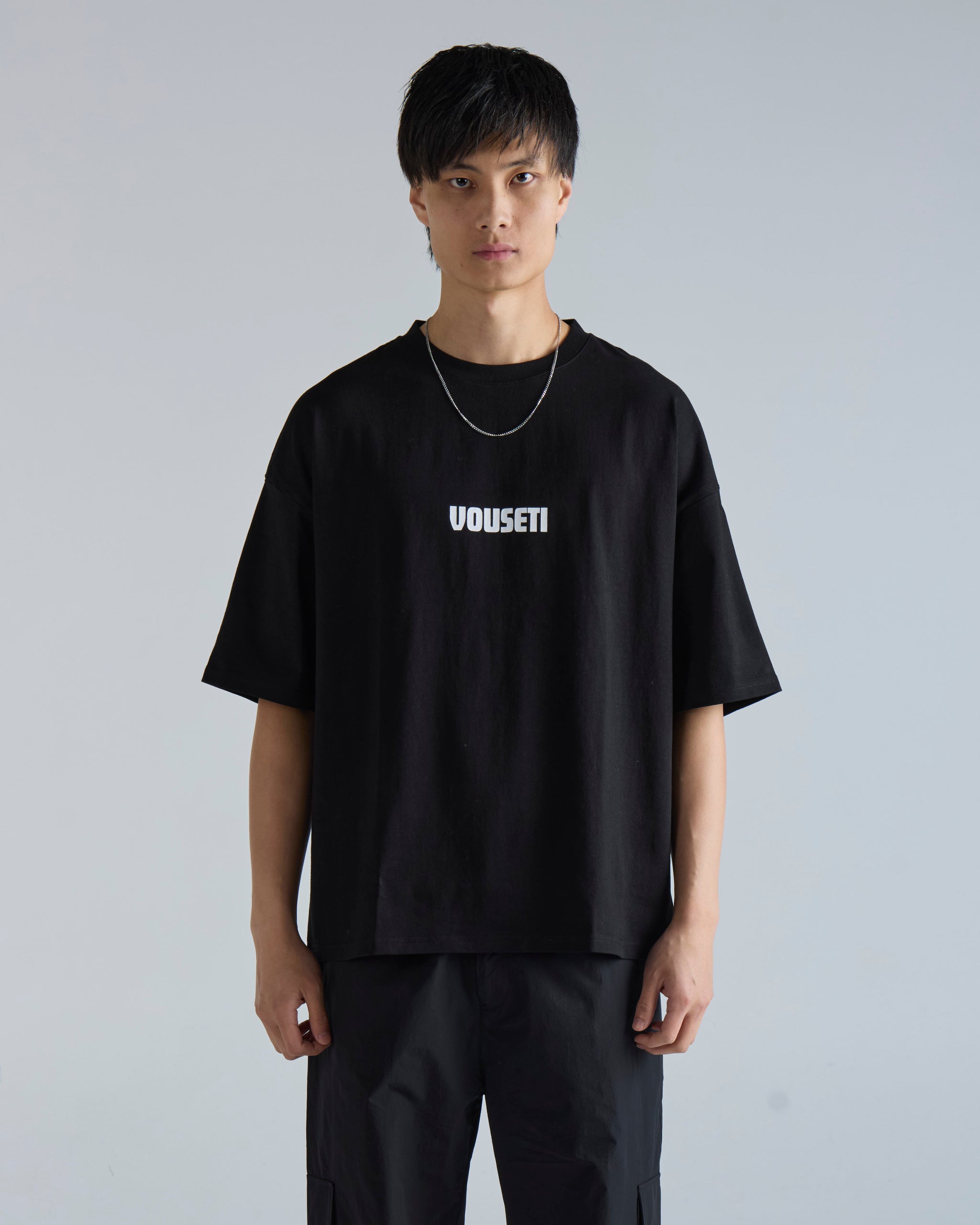 The VOUSETI 'Future Is Now' T-Shirt 300GSM boasts a boxy design with a VOUSETI lettering stamped across the chest and showcases a printed graphic with an impactful message: 'Future Is Now' on the back.