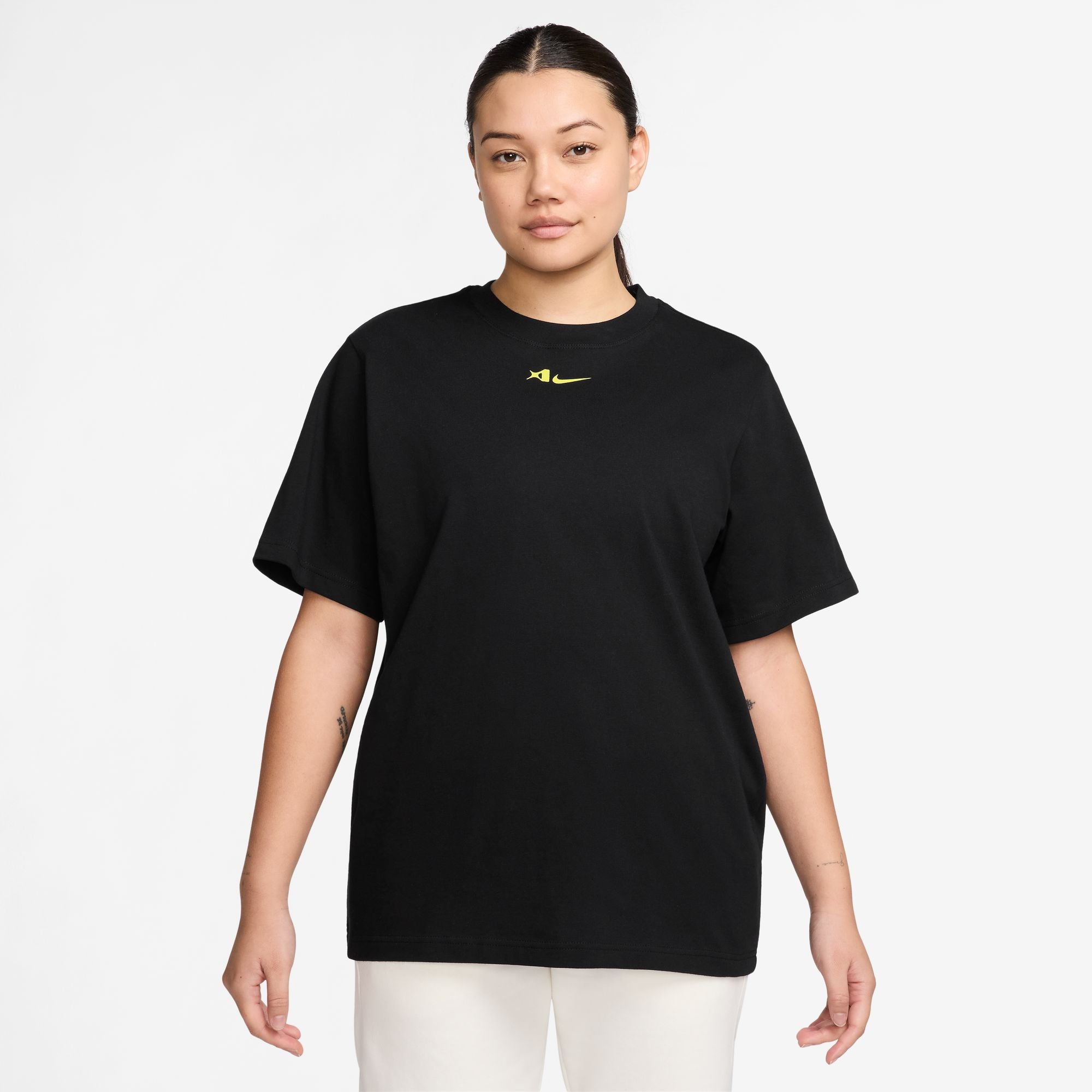 A'ja Wilson A'ja Wilson Women's Loose Short-Sleeve T-Shirt Unapologetic comfort meets unapologetic attitude. With structured, heavyweight cotton and a roomy fit, this tee honors the strength of A'ja's game. A loose fit provides a comfortable, confident feel. Built around the star she's always drawn into her signature, A'ja's logo is strong, bold and playful—just like the energy she brings to the court. More Details 100% cotton Printed graphics Machine wash Imported